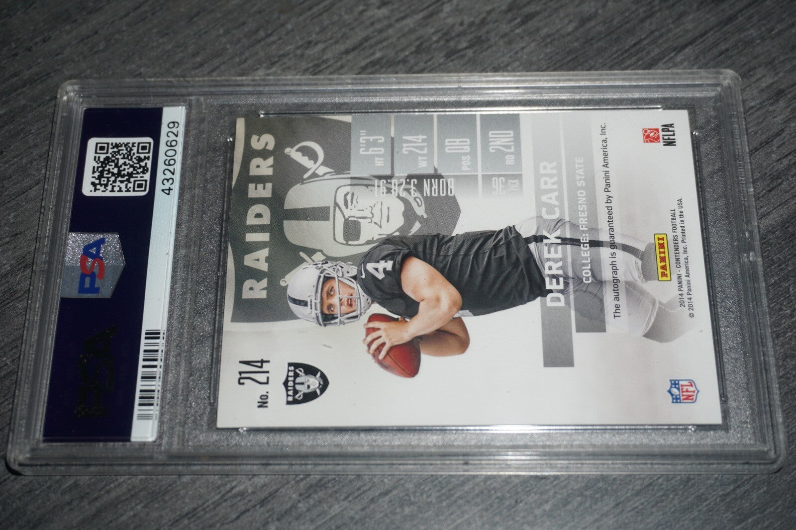 2014 Panini Contenders Derek Carr Playoff Ticket 214A PSA Autograph 10 /99